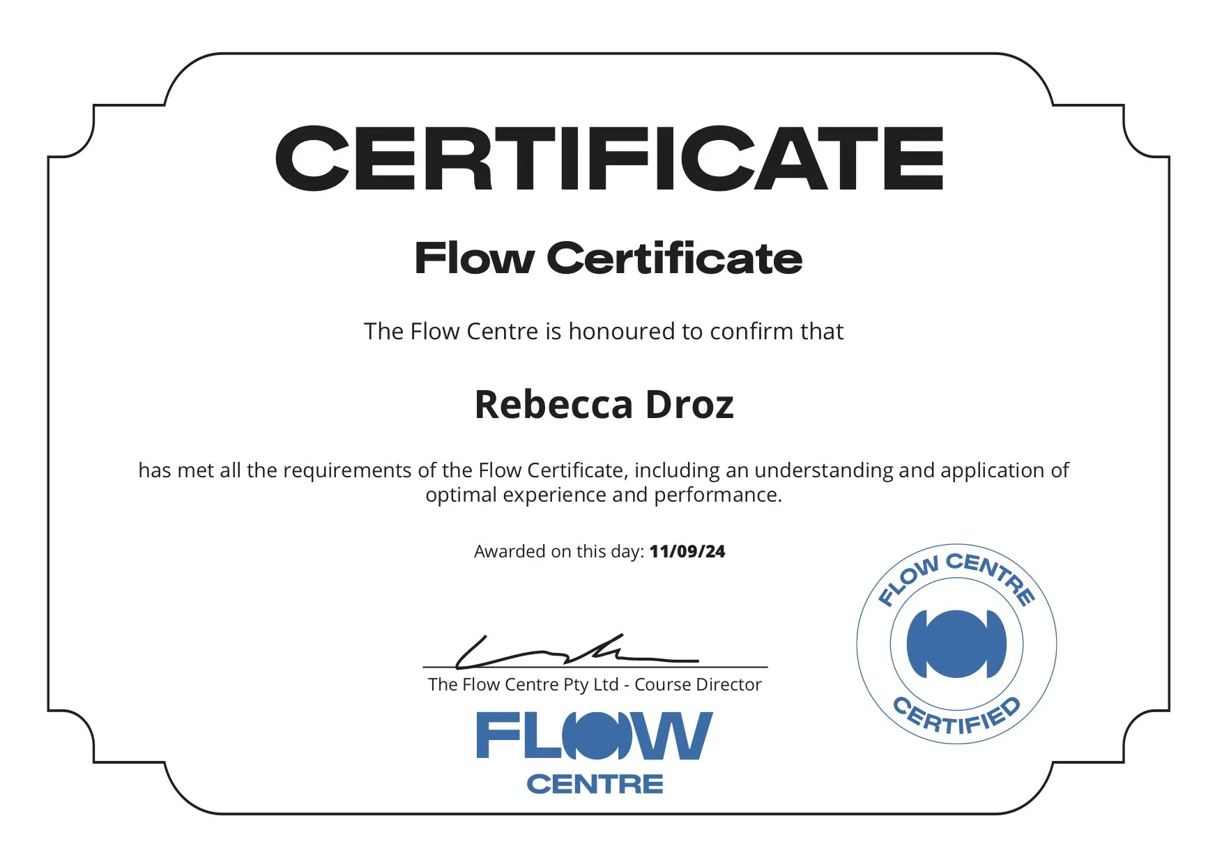 Flow Centre Certified: Flow Certificate