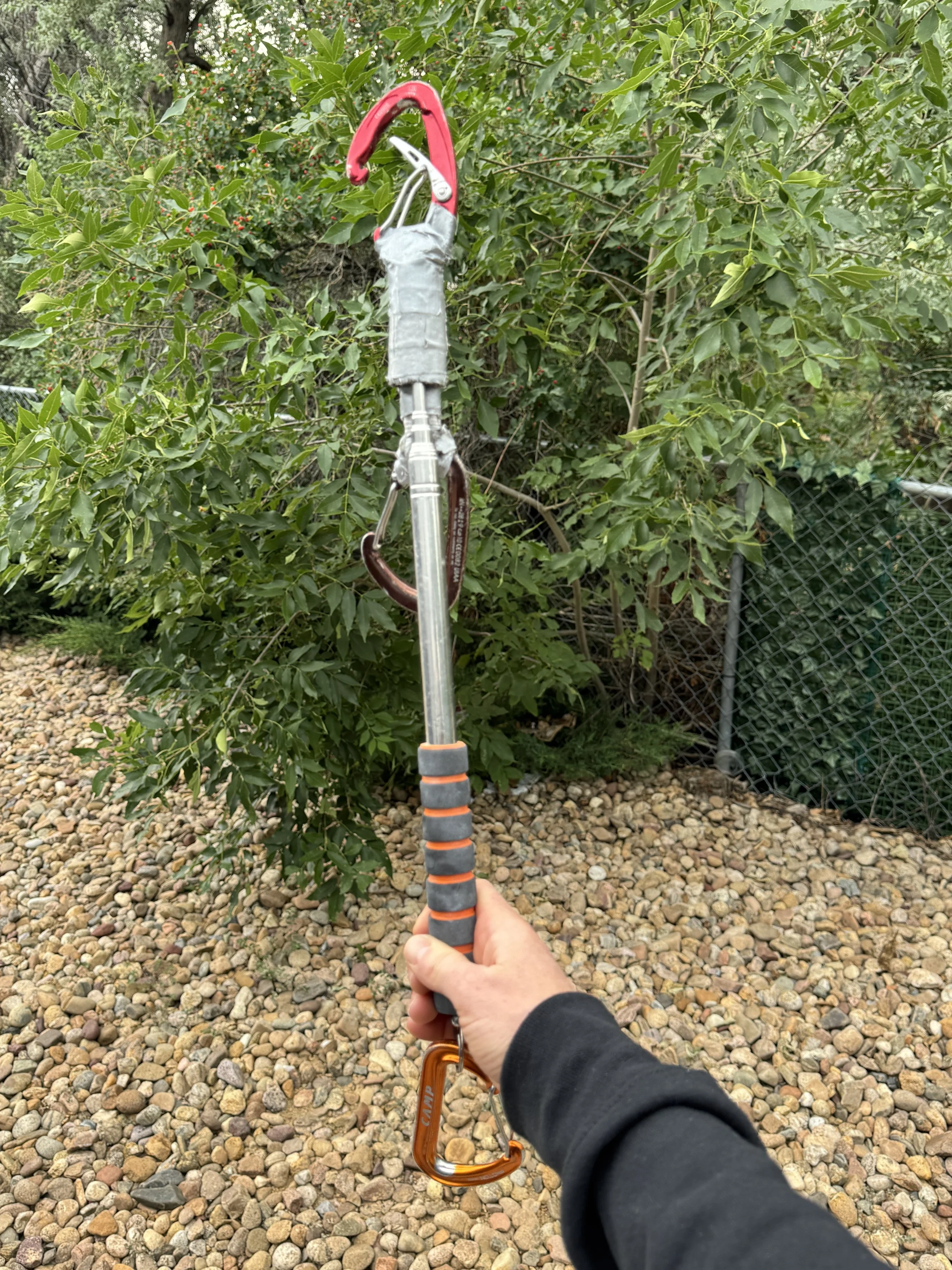 Mama Long Arm takes care of you when you feel scared. This slick, mini stick clip is easy to carry on your harness while you climb. If you would rather top rope up to the next bolt to work the moves, Mama Long Arm has your back!