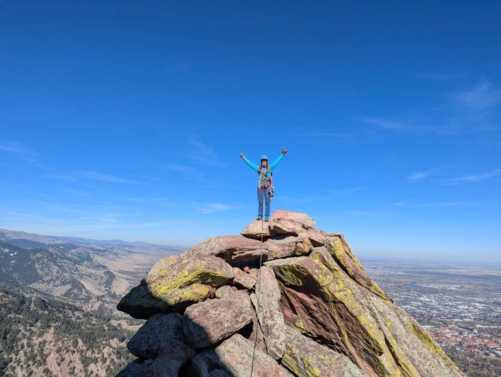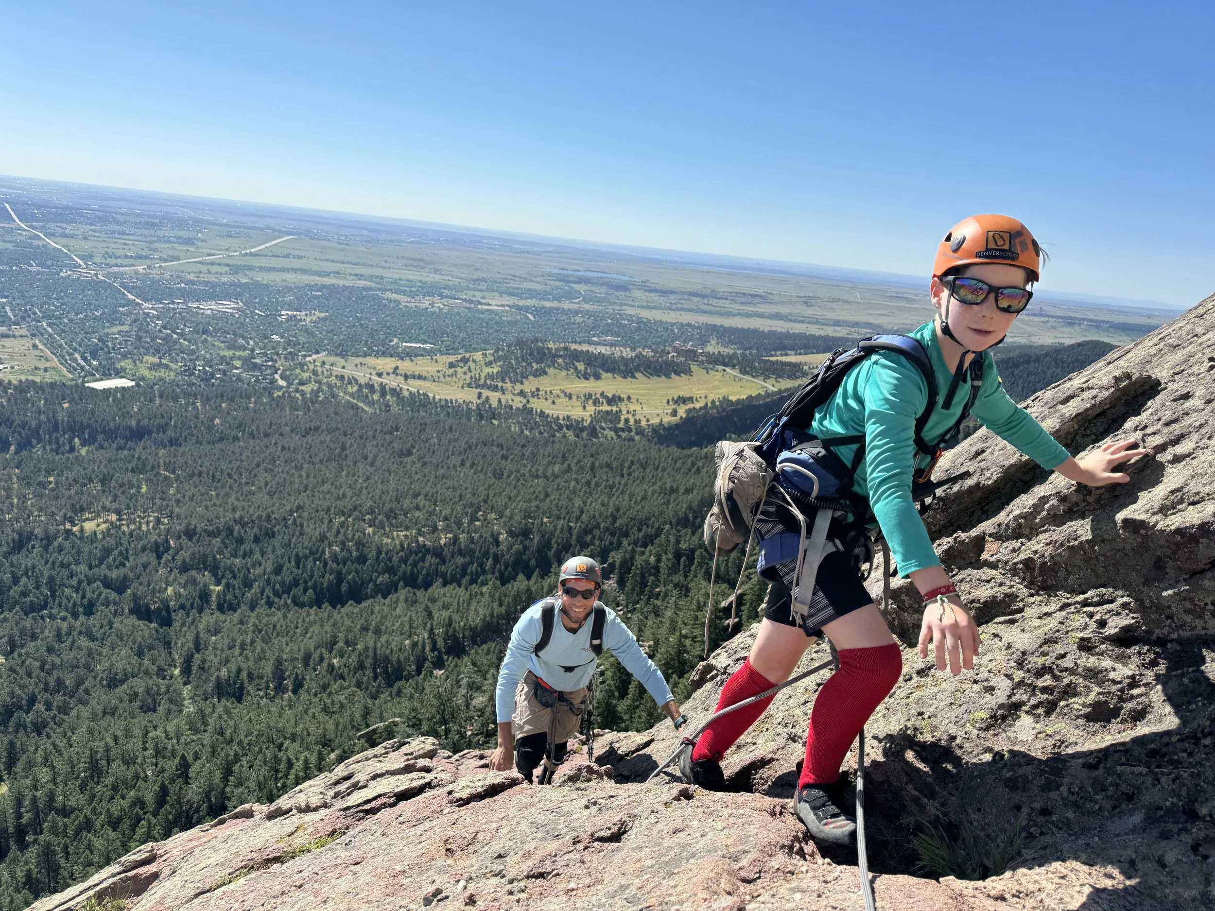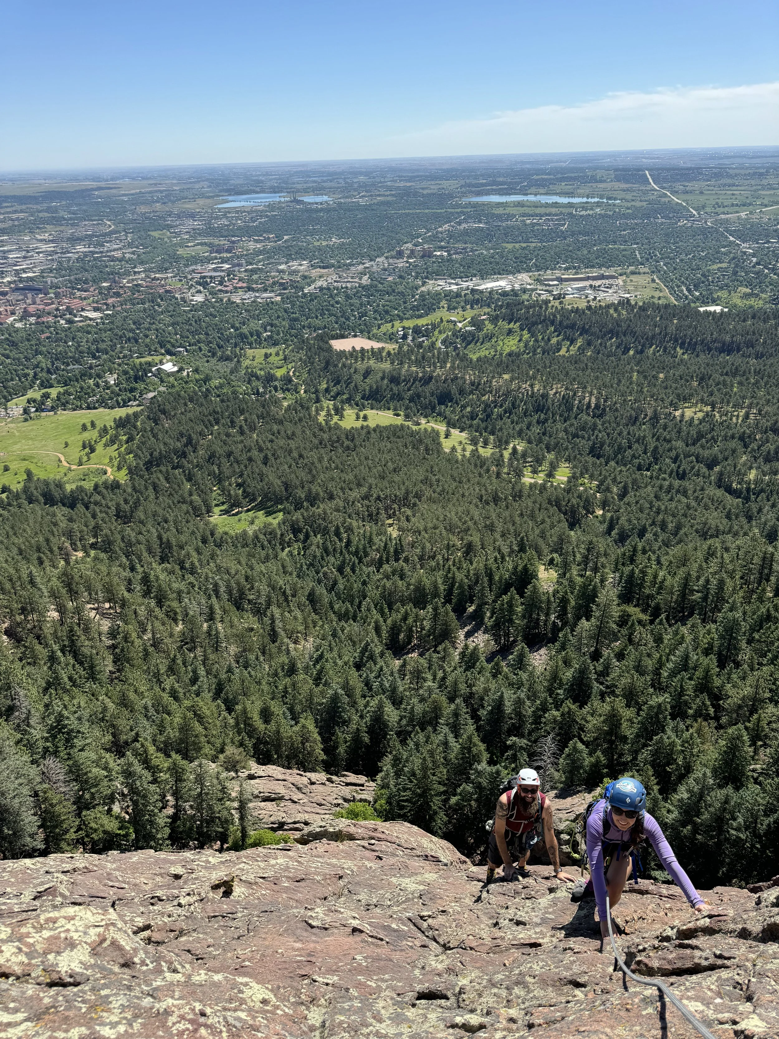 Boulder’s Flatirons are ICONIC! Climb hundreds of feet of sandstone slab on mellow terrain with spectacular views.