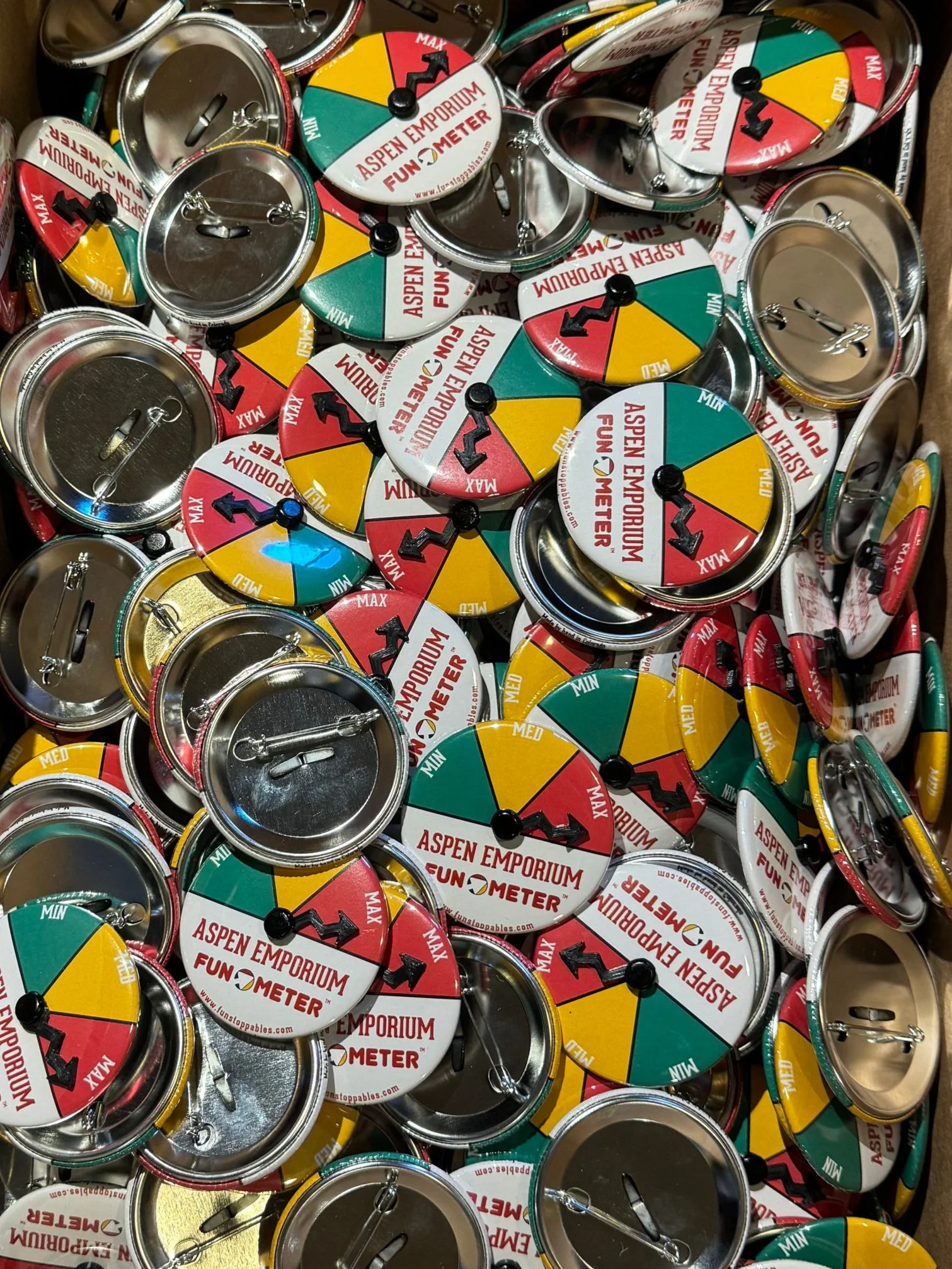 Sprinkle some extra fun into your business, event or gift bag with a customizable Fun O Meter button and Limited Edition Socks!